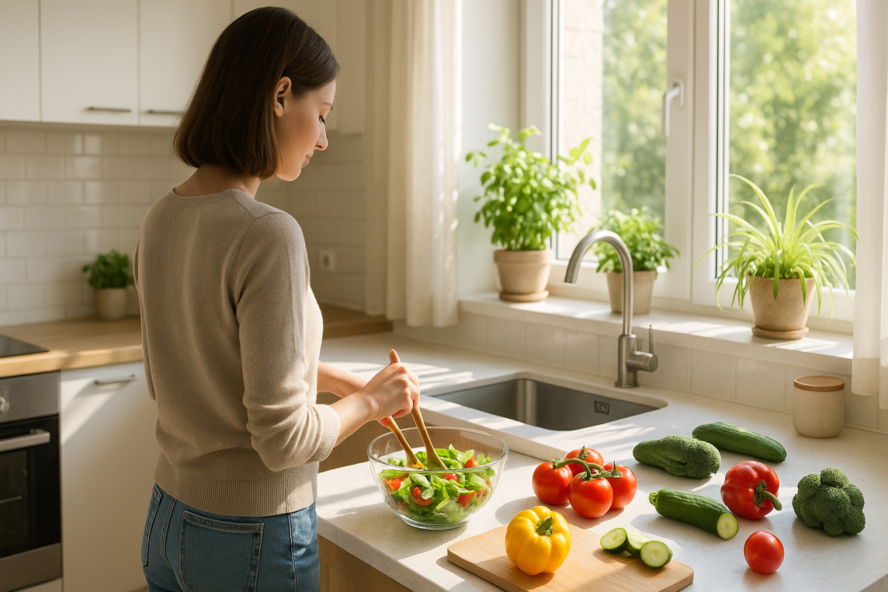 - Меньше соли — избыток задерживает воду, и живот кажется "надутым".