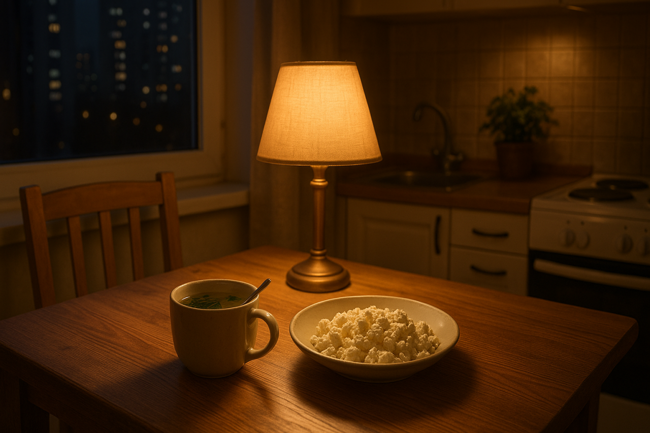 - Лёгкий ужин с белком (например, творог или омлет) поможет мышцам получить строительный материал ночью.